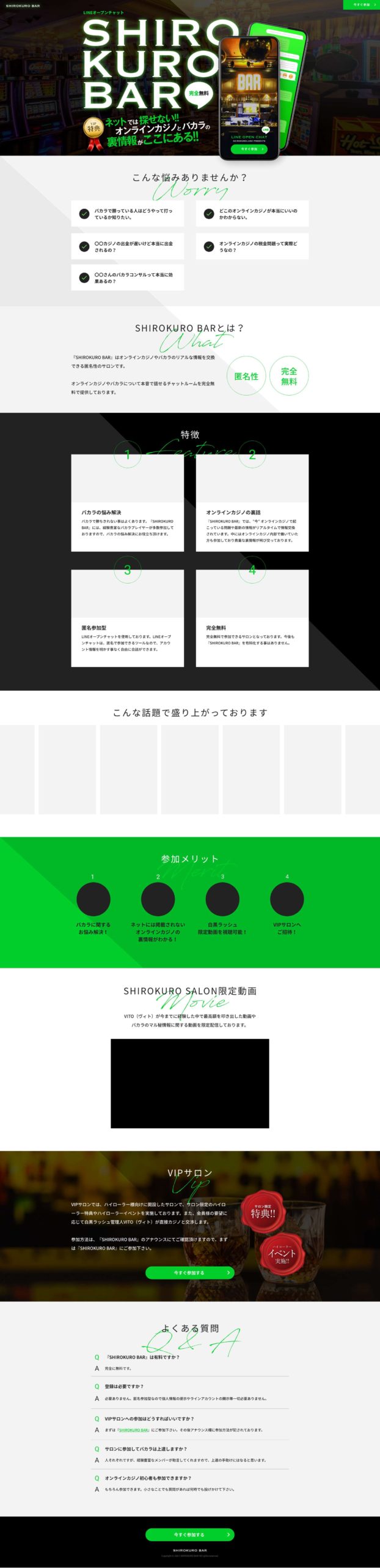 SHIROKURO BAR LP様 カテゴリー: ランディングページ • コメントを追加 2021年9月15日 コメントを残す コメントをキャンセルコメント 名前 * メール * サイト 次回のコメントで使用するためブラウザーに自分の名前、メールアドレス、サイトを保存する。